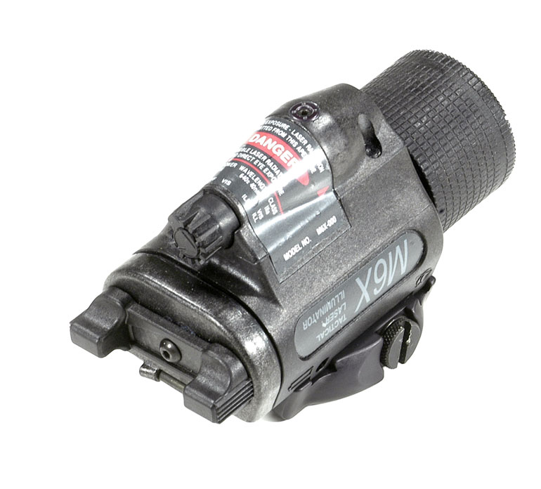 M6X: This “EXTREME” variant of the M6 is built to grueling standards with a shock suppression system and a flashlight that emits a blinding 125 lumens of highly collimated penetrating power. Independent ballistic adjusters allow the laser to be zeroed to the weapon for highly accurate targeting and control applications. The enhanced MIL-SPEC design allows the waterproof M6X to survive the world’ s harshest environments ranging from scorching deserts to tropical jungles.
